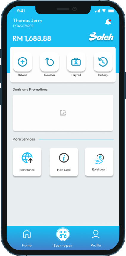 Boleh Apps ensure the e-wallet and fund are safe and secured by using E-KYC of digital authentication and onboarding.